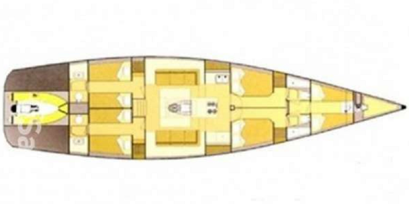 Diese Yacht hat drei Kabinen, bestehend aus einer Master-Kabine, die in zwei Doppelbetten umgewandelt werden kann und zwei Zweibett-Kabinen. Der Innenraum ist schön und profitiert von viel natürlichem Licht durch das Glasdachfenster.