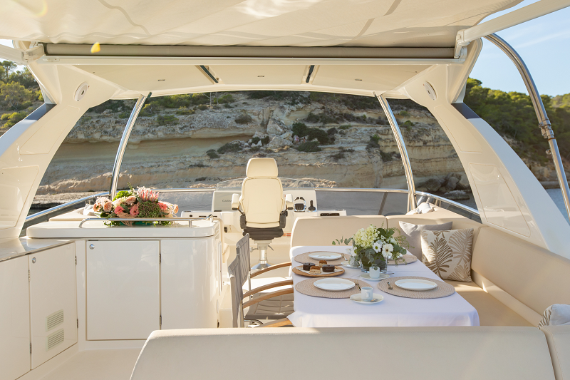 Handrails are provided along all passages and there is a protection gunwale along the entire sides of the maindeck and flybridge conveying the feeling of upmost safety.