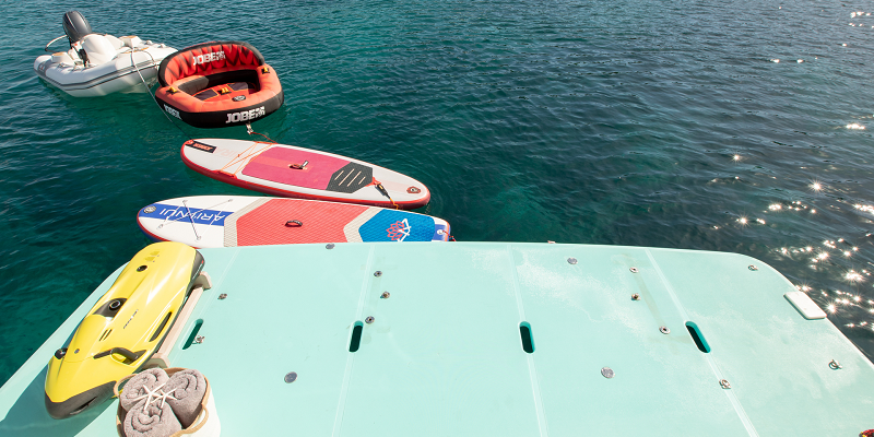Toys on board include a Seabob F5, towable toys and snorkeling equipment.