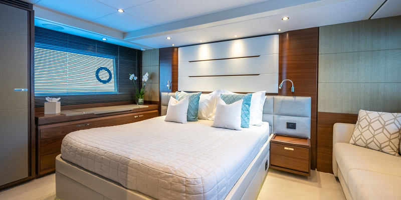 Zen has 4 well-appointed cabins which can sleep up to 8 guests. There is a full beam master cabin with en-suite bathroom and sofa area, a forward VIP cabin with en-suite and two twin cabins which share a bathroom. The beds in one of the twin cabins can be converted into a double.