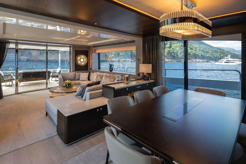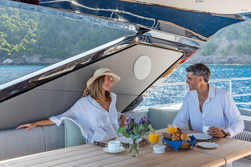 This 2025 Sunseeker is an excellent addition the the Balearic yacht charter market. She is a stunning yacht and is finished to a high standard providing a dream like charter experience. Features include state of the art zero speed stabilizers and a large hydraulic bathing platform with beach club set up and bench seating.
